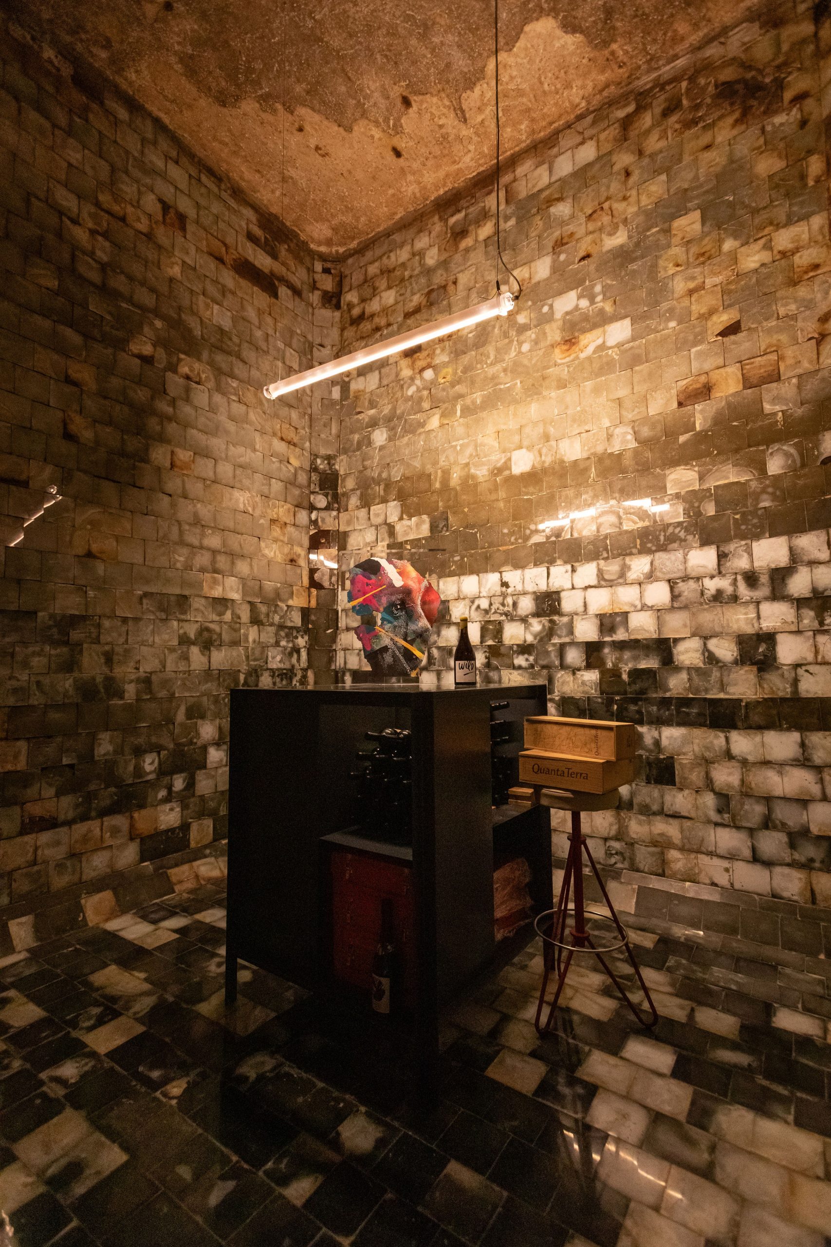 É então que se desce ao espaço térreo, onde as cubas originais de 1951, guardiãs silenciosas de um passado, permanecem intactas. O revestimento, com os padrões marmóreos originais, surpreende pelo contraste entre austeridade e elegância. Em cada um dos quatro espaços guarda um vinho especial da casa Quanta Terra. Nesta fase, os visitantes são convidados a deterem-se nesse detalhe, enquanto o espaço, impregnado de autenticidade, parece suspender o tempo, devolvendo ao presente a densidade do que foi no passado.