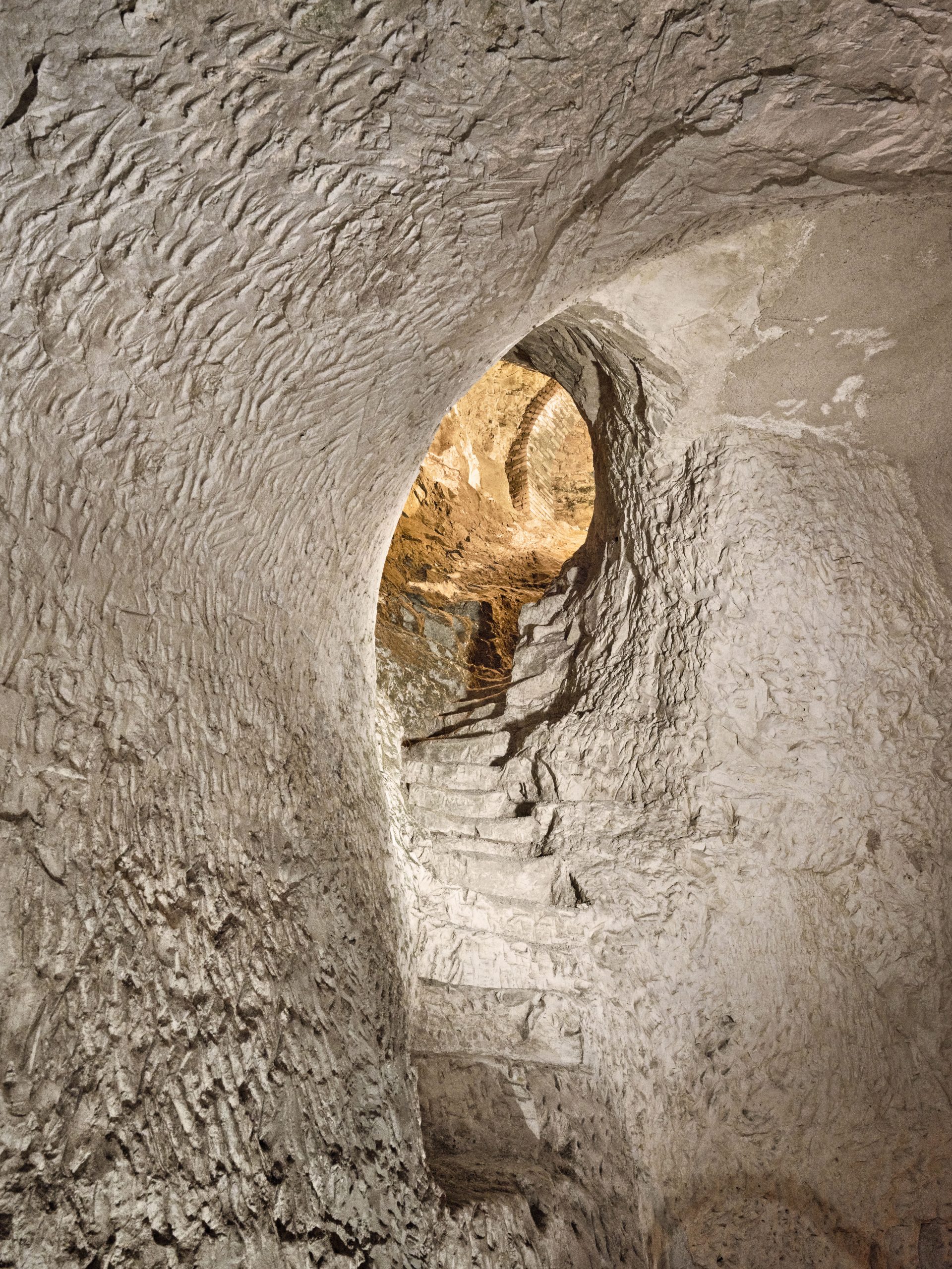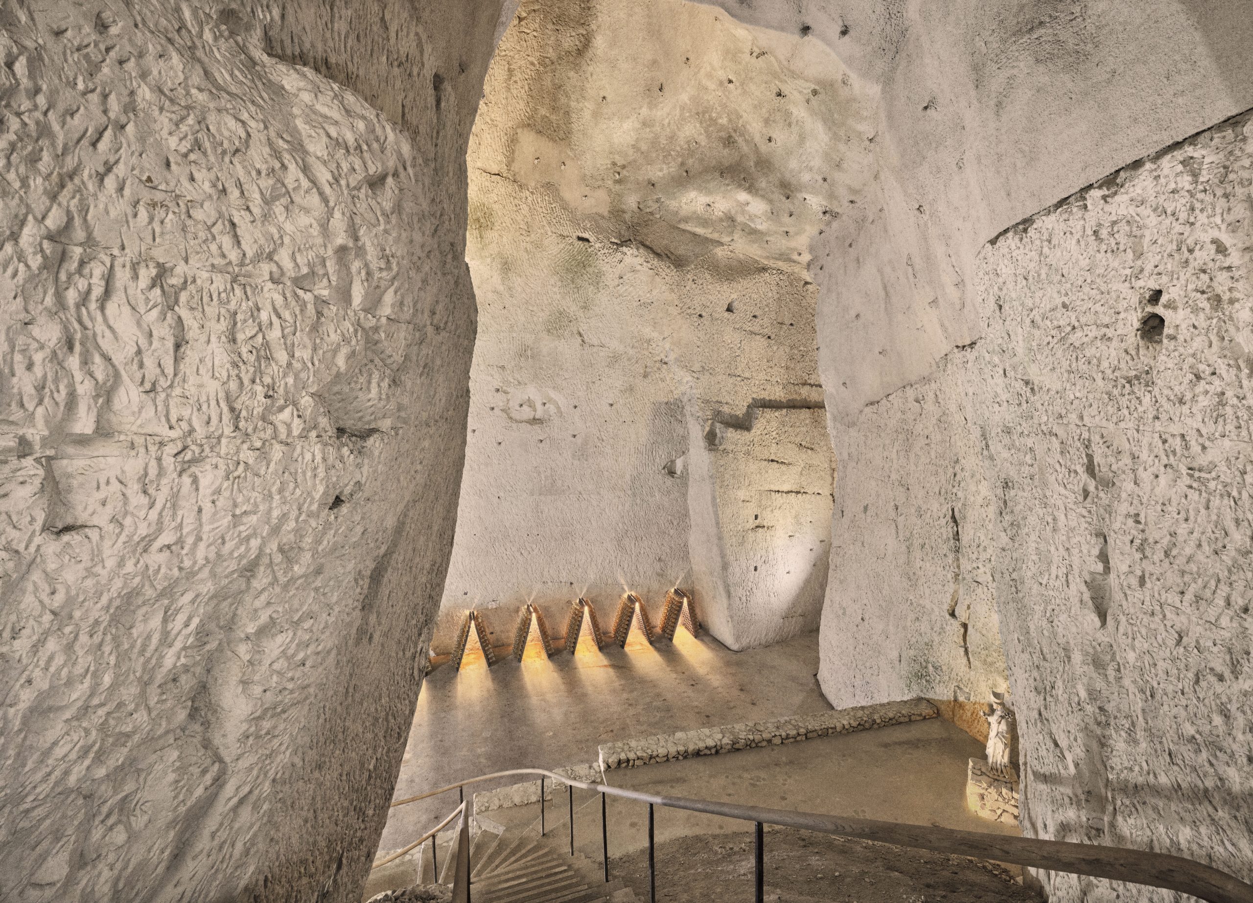 Mas, sob toda esta beleza e grandiosidade, estão as caves, as famosas Crayères, classificadas como Património Mundial da UNESCO, e nada nos prepara verdadeiramente para tão grande monumentalidade. As caves estão a 38 metros de profundidade e possibilitam o acesso a oito quilómetros de túneis, pedreiras desactivadas, de pedra calcária e giz, algumas datadas da Era Medieval. Aqui, o ar é fresco e húmido, o som que se ouve é apenas o murmúrio do tempo. É onde milhares, ou milhões, de garrafas alinhadas – a Ruinart nunca revela os números de garrafas produzidas ou em cave – aguardam, pacientemente, os seus momentos de fama.